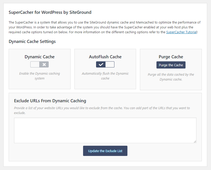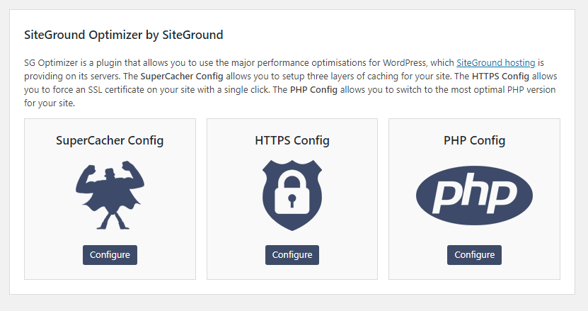 - SuperCacher: questa è una configurazione appositamente creata da SiteGround per WrodPress. Inoltre è stato anche sviluppato un plugin per WP (installato automaticamente se usate l'installer del pannello di controllo), per gestire il tutto. SuperCacher è una cache multilivello. Il primo livello mette in cache i contenuti statici (immagini, script JavaScript, etc), il secondo crea una copia in cache dei contenuti dinamici (quindi le singole pagine); entrambi i primi due livelli di SuperCacher si appoggiano a NGINX, un server web particolarmente efficiente nel servire contenuti statici. Il terzo livello di SuperCacher invece salva in una cache memcached i risultati delle query al database, aiutando quindi a velocizzare di molto la parte di comunicazione fra PHP e MySQL, che spesso nelle pagine più complesse e che fanno uso pesante di plugin risulta critica.